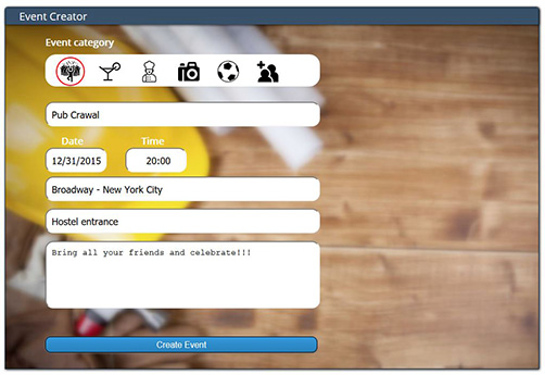 You pick the location, you check your preferred hostels, you choose the people, you create the events, and you'll have the best experience!